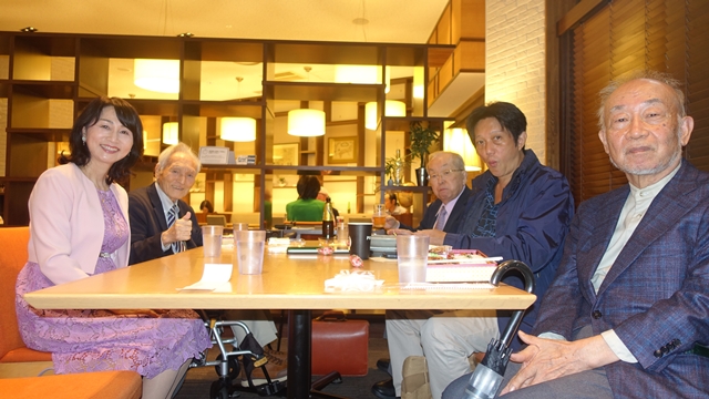 右奥から「帯津先生、三枝先生、私、左奥が米田様、和 真音様」