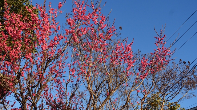 家の近くを散歩していて見かけた、紅梅。
