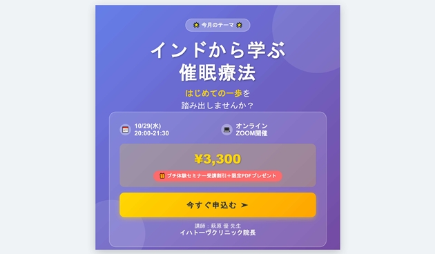 10月28日(水)20時~オンライン 「催眠療法はじめての一歩」