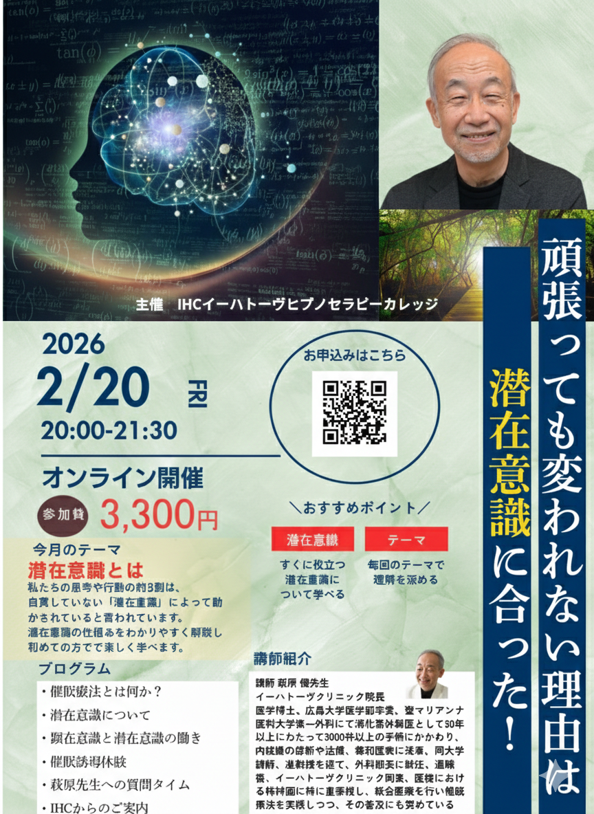 Dr.萩原の【催眠療法はじめての一歩】テーマ 「潜在意識」